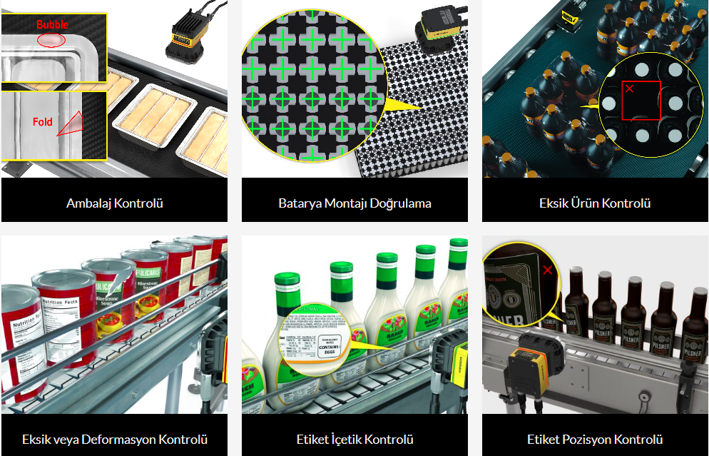 Kamera tabanlı sistemlerle ambalaj, etiket, batarya montajı, ürün adedi ve deformasyon gibi kritik kontroller anında yapılır.